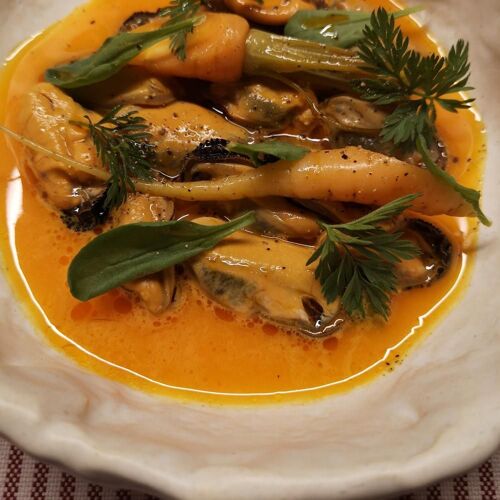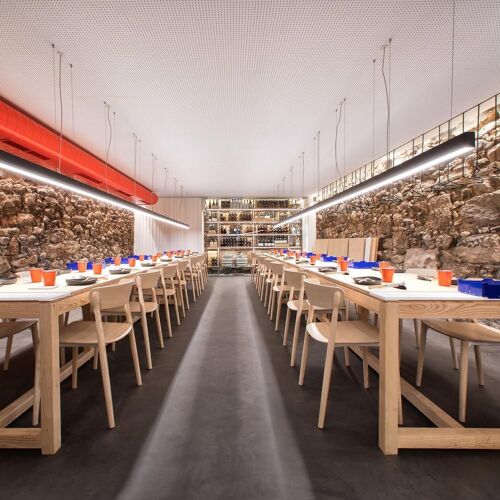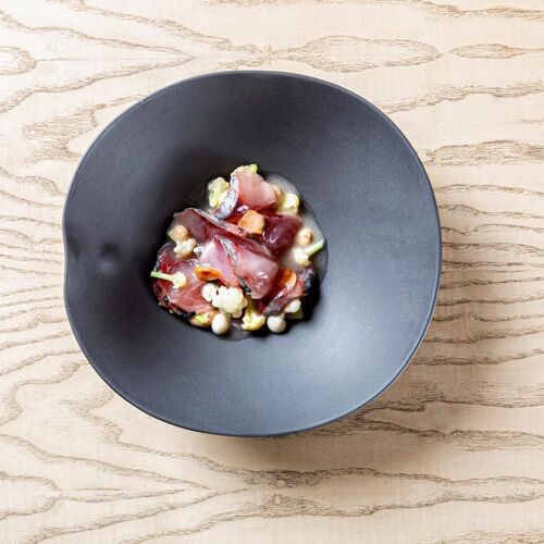 Located along a narrow street in the city’s old quarter, yet just a few steps from the boats moored at the Real Club Náutico de A Coruña, NaDo boasts a thoroughly modern look, with an open-view kitchen and just two long tables that can be adjusted according to the number of guests. Here, chef Iván Domínguez, who is constantly moving between the kitchen and the dining room, creates contemporary cuisine with its roots in Galicia and the Atlantic. This is showcased in particular on the Furancho surprise menu, on which the chefs themselves select the dishes to be served.
