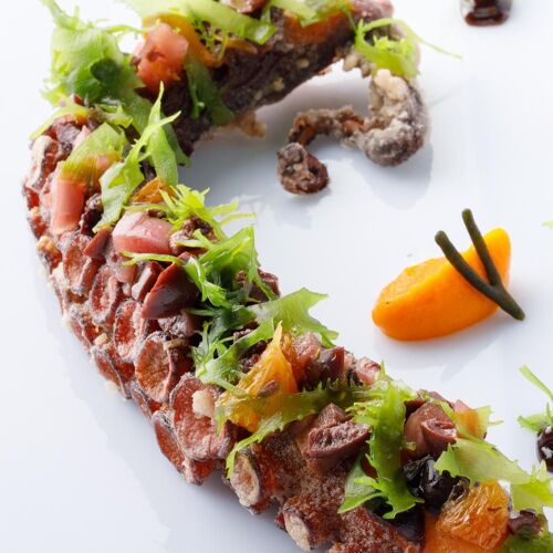 This stone-built bodega complex is located in a panoramic setting surrounded by vineyards in the heart of the D.O. Ribeiro wine region. Its updated take on traditional cooking highlights a creative touch and is centred on the very best Galician meat and the freshest fish sourced daily. Half a dozen attractive guestrooms are also available.