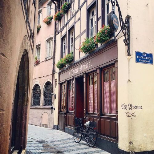 A buzzy vibe and closely packed tables set the scene in this winstub, whose menu is the epitome of Alsace tradition (cockerel in Riesling, garnished sauerkraut, braised knuckle), albeit with a few more creative dishes, such as their delicate Alsace makis. Don’t miss the chance to sample one of the house specialties: melt-in-the-mouth pork cheeks slowly braised and simmered in a velvety pinot noir sauce – to die for!