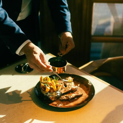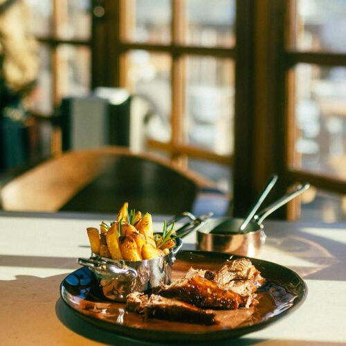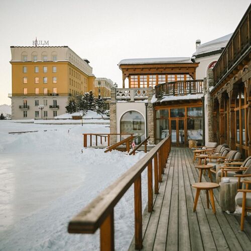KCC stands for Kulm Country Club. The handsome L-shaped building is located right next to the ice rink and has a garden for summer days. Local produce takes centre stage in the dishes, which often draw on Mediterranean influences. As well as an appealing selection of starters and pasta dishes, the menu includes dishes for two, such as beef cutlets and lamb shoulder. Much of the food is flame-grilled or roasted over embers. The atmosphere is relaxed and the decor tasteful – the vintage sledges adorning the ceiling are bound to draw the eye! There is also a fabulous terrace. Live music and vinyl sessions provide the acoustic backdrop.