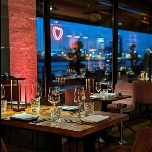 Trendy, hip and relaxed is how you might describe this pleasant restaurant right on the waterfront. Great view of the container port – especially from the terrace in summer. The kitchen serves modern seafood, e.g. Tristan Rock Lobster, Bisque, Papaya, Mousseline. Some dishes are also ideal for sharing. Vegetarian and vegan dishes are also available. In addition to the a la carte selection, the restaurant offers a tasting menu with six or seven courses.