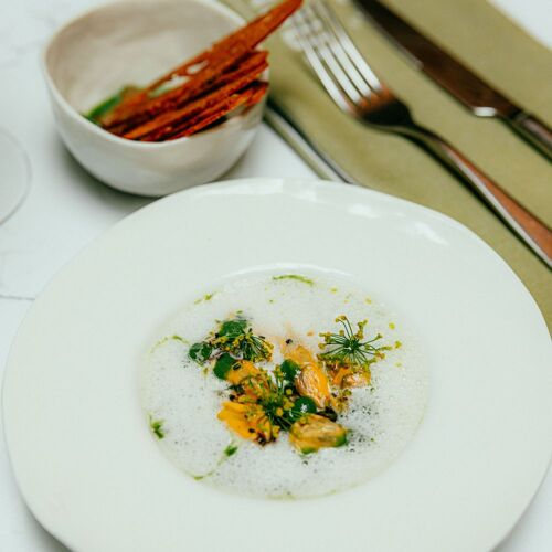 Damien Laforce, former TV Top Chef contestant, runs a friendly joint in which rusticity and modernity rub shoulders in an interior comprised of bare bricks and light wood. His culinary score focuses on top-notch produce which he knows well, being a hunter and angler himself. Langoustine and shredded spider crab in a smoked haddock stock, or scallops on a frothy bed of mashed parsnip and lemon confit: each dish illustrates the chef’s consummate, unencumbered approach. Well-curated organic wine list and counter seats lining the walls. A savvy balance between simplicity and creativity.