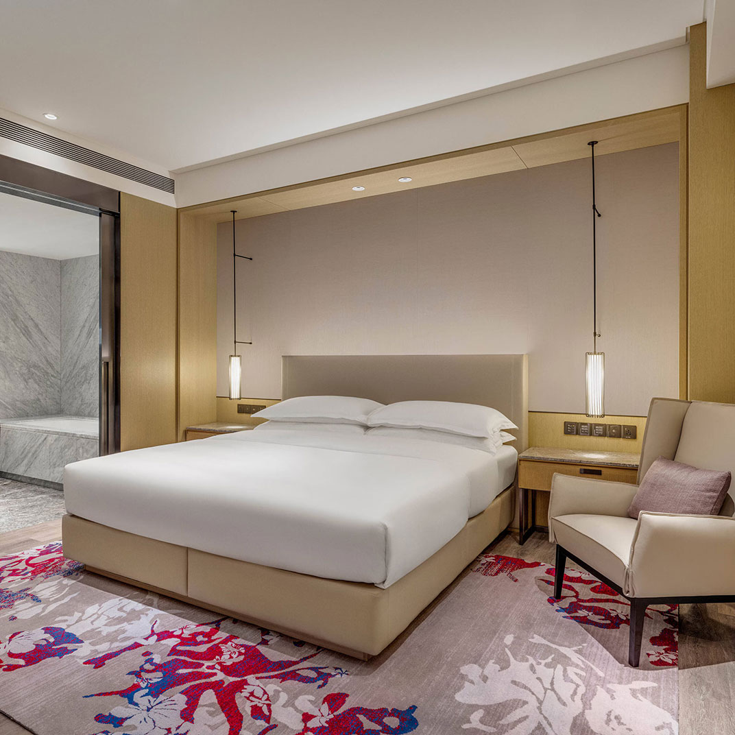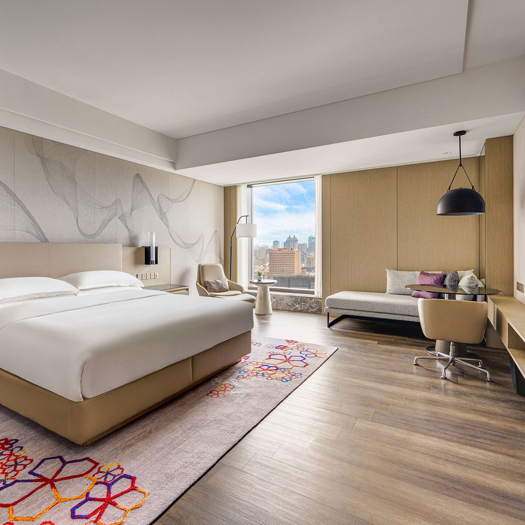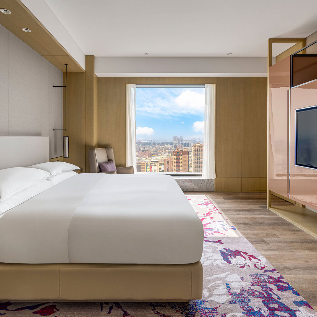 Kaohsiung Marriott operates at scale with 700 rooms in downtown, anchored to a shopping mall and within walking distance of the Light Rail Transit. The rooms are predictably comfortable: large desks, fast internet, floor-to-ceiling windows that frame Aozihdi Forest Park or the Love River if you're in a suite. What distinguishes the property is its sheer capacity: Taiwan's largest banquet space can accommodate 2,000 people, making it a fixture for conventions and weddings. There's also Swisspa for post-event recovery, indoor pools, and several restaurants cycling rotating cuisines. It is 30 minutes from the airport, 15 from the high-speed rail station, a pragmatic positioning for a hotel built to handle volume efficiently.