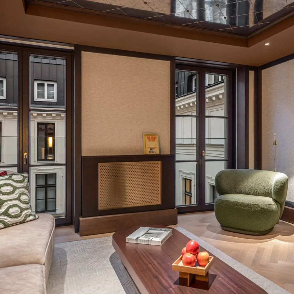 The ratio of suites to rooms is an unusual 80 to 31, another hint at the hotel’s ambition; the rooms start out generously sized, while the largest suite expands to more than 2,000 square feet, and can be combined with three others, spanning an entire floor of the palace. At all levels they’re luxurious, but tastefully so, and nothing if not memorable. So is the spa, with its 14-meter indoor pool; meanwhile the restaurant, Donnersmarkt, serves a plant-forward menu. And to complement the hotel’s impressive art collection, every room key is also a pass to Belvedere 21, the contemporary art branch of Vienna’s Belvedere museum.