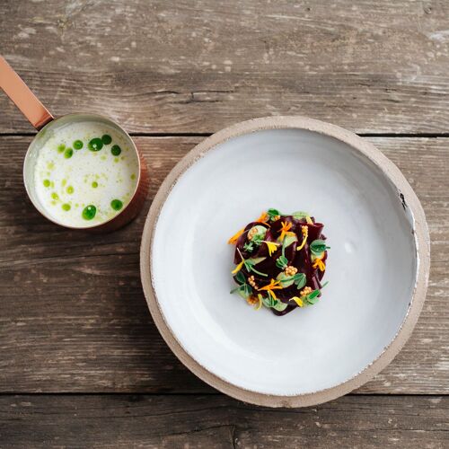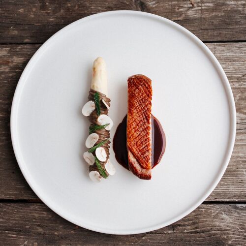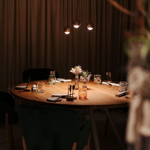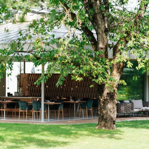 A little off the beaten track but well worth the trip! Surrounded by meadows and fields, this restaurant surprises with its upscale and modern decor. The bright and airy dining space has the feel of a conservatory. In summer, the glass walls can be opened to the beautiful garden, creating a terrace feeling. Anja-Margaretha Moritz, your warm and attentive hostess, adds a personal touch that definitely contributes to the almost intimate atmosphere. As for the food, under the direction of Roman Pichler, excellent regional produce is meticulously prepared and presented in pleasingly pared-down dishes that are rich in contrasts and yet beautifully harmonious. A great combination of delicate acidity and sweetness, herbal notes and floral accents makes the beetroot, dill and mustard seeds, as well as fennel blossoms, marigold and oxalis an extremely flavourful creation. There is a surprise menu comprising five or seven courses, which, alternatively, can be ordered individually – but you can also take a peek at the menu beforehand if you wish.
