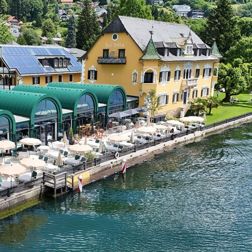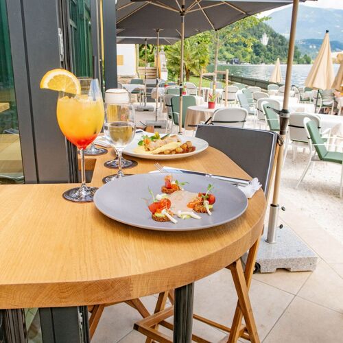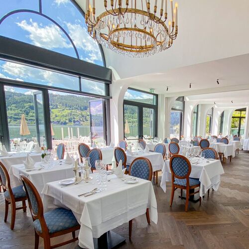 As the name suggests, this restaurant enjoys a splendid location. Housed in the long-established See-Villa hotel, right by Lake Millstatt, it has a wonderful terrace that extends right to the water's edge! The elegant interior has floor-to-ceiling windows affording unobstructed views of the lake. The menu is rather diverse, featuring international, regional, traditional, seasonal fare – game and freshly caught fish from the lake take centre stage. The bar in the middle of the restaurant is sure to draw the eye.