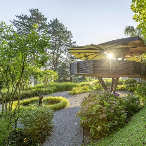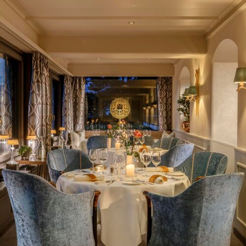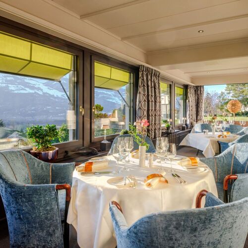Park Hotel Sonnenhof's wonderful location and comfortable accommodation options are not its only trump cards. The restaurant, run by chef Hubertus Real, is also in high demand. In a tastefully elegant setting, at attractively laid tables, diners are served classic cuisine made with first-rate ingredients. The friendly and attentive front-of-house team also provide expert advice on their very extensive selection of wines. The magnificent terrace also has a viewpoint – the "Adlernest" (eagle's nest) – from which you can take in the stunning view.