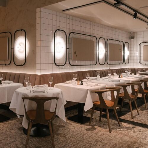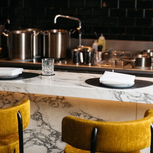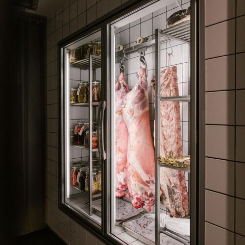 At the front, Onglet is a butcher shop selling delicious meat products during the day; but in the evening, the cold store door opens, and diners are welcomed into a trendy restaurant with nostalgic decor reminiscent of a butchery of yesteryear. In the fully open kitchen, chef Alan and his team craft a tasting menu that marries familiar flavours with creative flair. Rare Holstein beef entrecôte with a velvety foie gras sauce, or tender chuck tataki accompanied by a chimichurri enriched with anchovies and green herbs as well as Kewpie mayonnaise – this cooking is precise and full of surprises. Perfect for sharing!