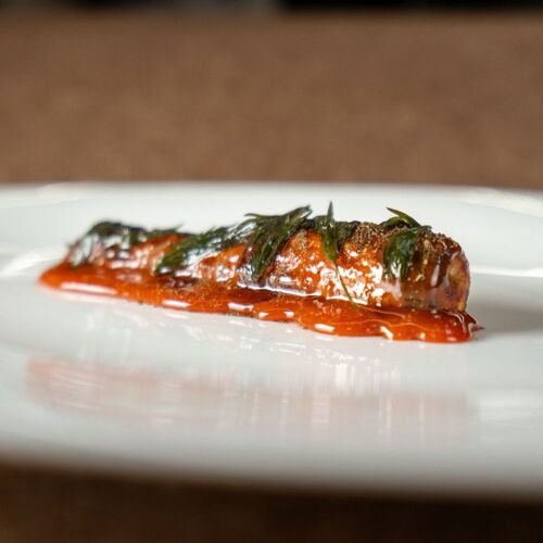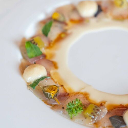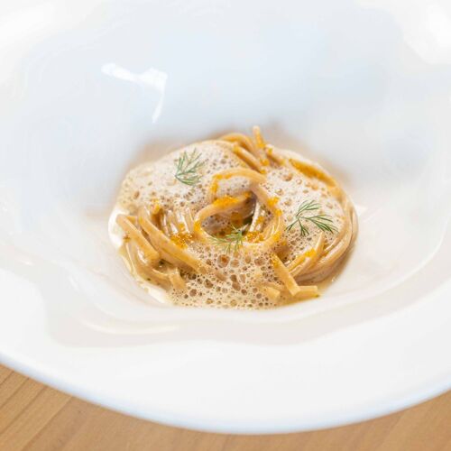 Once you’ve left your car in the car park, take the lift to the third floor of this building, where you’ll find the Kosmo Taste the Mountain restaurant – from here, staff will accompany you to the gourmet Téa del Kosmo. “Téa” means chalet in Valtellina dialect and the impression here is of exactly that – a modern chalet with just four tables. When you book online you’ll be given the choice of two tasting menus, both of which showcase Alpine ingredients interpreted with a creative twist.
