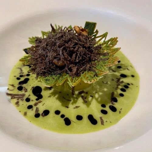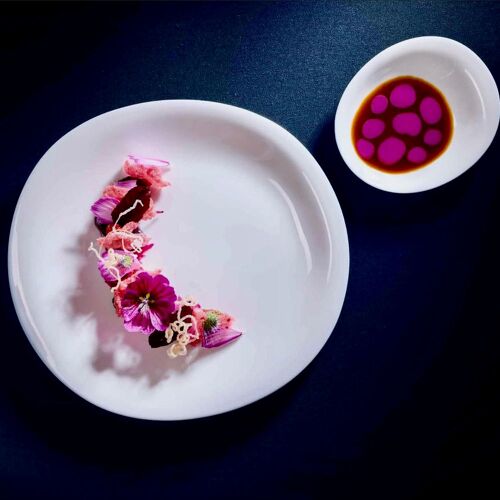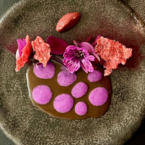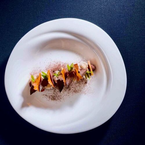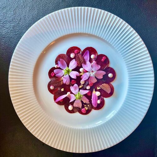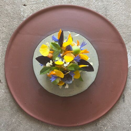 René Mathieu has set up shop in the Airfield Hotel as he pursues his work with plants. This champion of Luxembourg’s terroir and of the rich plant world continues to grow without disavowing his ambitious or innovative streak. His unorthodox approach to vegetables, herbs and fruits is truly impressive. He presents the raw ingredients of each of his dishes, explaining their qualities and how he cooks them. Chef Mathieu endeavours to shine the spotlight on authentic natural flavours, underscoring them subtly and intensely. His sauces further enhance each dish, adding suave smoky notes which are the baseline of his menu. He might grill leek hearts in the oven before pressing them and then cooking them over an open fire, hence the succulent smoky edge or he may pair a cream of green leek with fermented lemon, while toasted hazelnuts add a crunchy edge and truffles a hint of sophistication. At Fields, your tastebuds are taken on a whirlwind tour in keeping with the seasons as the chef’s fascinating jus constantly surprise and impress. René Mathieu loves cooking and his passion for food is entirely infectious.