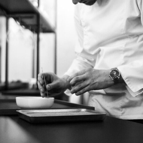 Baptiste Heugens boldly steps outside the box to create unexpected, yet balanced dishes, pairing his consummate knowhow with unconventional associations. The chef likes to cook fish (from Brittany) simply and purely, adding a new dimension thanks to side dishes jazzed up with fresh, spicy or tangy notes for added depth and intensity. A fascinating quest for culinary balance. We advise choosing a table downstairs for a bird’s eye view of the zinc counter where the dishes are prepared.