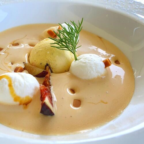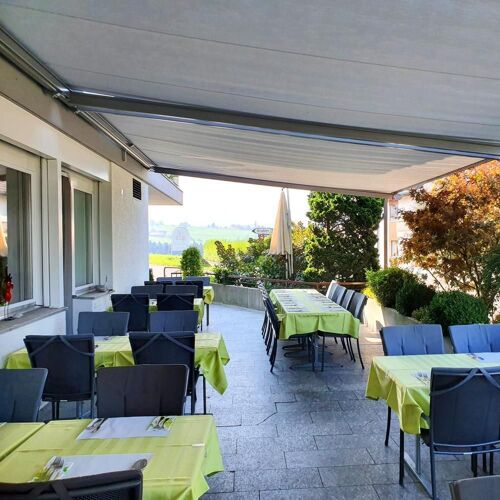 Nestled in a small town at an elevation of 770m, this third-generation family business serves classic seasonal fare with a Mediterranean twist in an elegant light-filled extension. There are two set menus (one of them vegetarian), from which you can also order à la carte. Tempting dishes include Sigigen trout fillet with wild garlic, and timeless favourites such as "Suure Mocke" (marinated beef roast). Or why not share the Chateaubriand beef fillet for two? Friendly service. For a more rustic dining experience, head to Beizli & Sonnsyte, which also doubles as a lounge. Another option is to dine on the gorgeous terrace, where you can order from either restaurant.