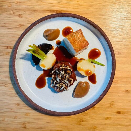 Three converted sheds hidden away in the heart of town play host to this bright, airy restaurant with an attractive summer courtyard for alfresco dining. The menu lists an enticing, seasonally changing selection of well-priced small plates and larger sharing dishes. Robust, satisfying flavours abound across the cooking, starting strong with the excellent sourdough and Marmite butter. The team are welcoming and friendly, and their operation also includes a coffee shop and deli on the High Street.