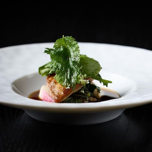 Aska is an ideal ambassador for its edgy-cool South Williamsburg neighborhood. In a dark, intimate space, Chef Fredrik Berselius and his ace team deliver on the promise of highly accomplished Nordic cuisine. Each course is presented by a personable member of the kitchen team, with the amiable chef himself routinely stopping by to engage with diners. Local products are woven into the seasonal tasting, with local pastured quail dry-aged, seared, and plated with stuffed morel mushrooms, nasturtium and truffle-speckled jus. Grilled Norwegian langoustine tail with gooseberry is sweet and luscious; slow-cooked hake is topped with aged beluga caviar and dressed with a dark beer cream sauce that simply must be sopped up by the accompanying malted barley milk bread.