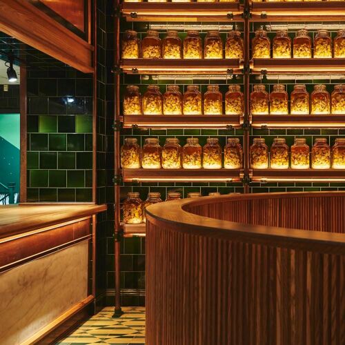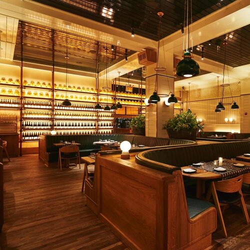 The stars must have aligned to bring restaurateur Stephen Starr and design firm Roman and Williams together to form this bright culinary retreat settled along 26th Street. Everything seems to click at Upland—the setting is urbane and cozy, with vintage floors along with glowing jars of preserved lemons and backlit wine bottles lining the walls. Earthy and bountiful, it is an ideal backdrop for the California-meets-Mediterranean cooking. A meal from this team might reveal a disc of hand-cut beef tartare with smoked egg yolk and pickled green tomatoes; or a tranche of roasted King salmon with tender-braised baby artichokes, smoked mussels, and pole beans.