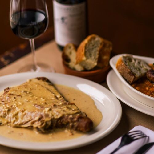 Tucked away in Ridgewood, Queens, this neighborhood gem has quickly become a local favorite for its Italian dishes served in a cozy setting. The offerings are simple but hit all the right notes, with daily specials, appetizers like cured meats and cheeses, fried calamari, and salads like arugula with pears, goat cheese, and caramelized walnuts dressed with balsamic, plus pastas like Bolognese and cacio e pepe. Main dishes include branzino and breaded pork cutlet. One dish not to miss? Lasagna alla Bolognese, a perfect rendition of a classic that's sided by a small mug filled with grated parm for sprinkling on top. End with tiramisu, of course.