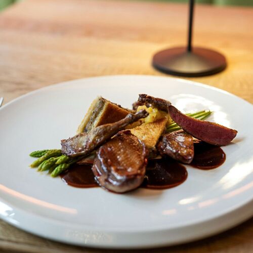 Bearing its name of old, this modern restaurant carries on the tradition of the original 19C Zum Adler inn. Today it is lovely and light inside, with a smart and minimalist decor. The focus lies squarely on high-quality meat, such as Wagyu beef steak. Fish and vegan options also available. At lunchtime there is a smaller offer with a reasonably priced lunch menu - but you can also choose from the steak menu.