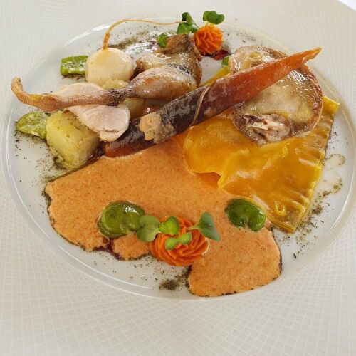 The Château de Dissay, a 15C stately home with an elegant and refined interior, serves modern and visually exciting cuisine. In autumn, the chef harness his talent to revealing the big-boned flavours of game. Pleasant terrace in the castle courtyard.