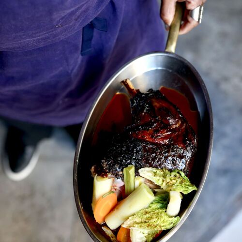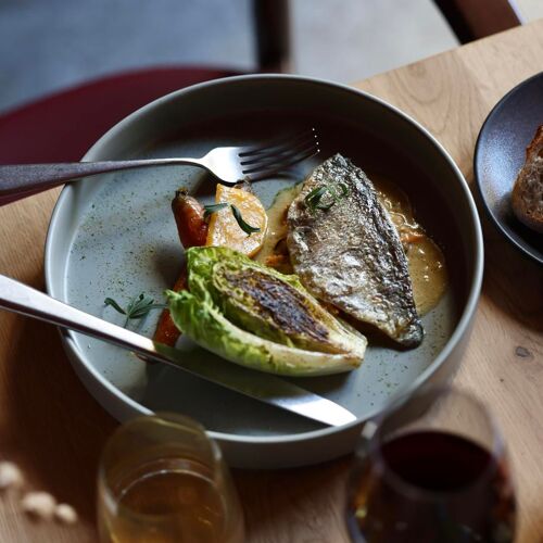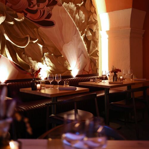 A separate entrance from the hotel's leads to this bistro boasting vaulted ceilings and carmine hues – the space is elegant and cosy, in keeping with the fine dining cuisine of chef Georgiana Viou, who also devised Gigi's menu. All the dishes come from the same kitchen as Rouge, but of course are much simpler, comprising sun-drenched Mediterranean cuisine. Crépinettes of Alpilles lamb, roasted peppers, garlic and herb cream; mackerel from Le Grau-du-Roi, Catalan escabeche-inspired stuffing and broccoli. At the back, a table d'hôte welcomes small groups and even guests eating solo.