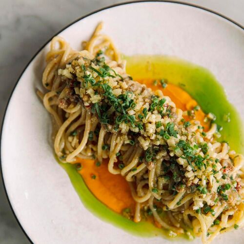 Everyone is drawn to restaurateur Jen Agg's hip, boisterous venue, which manages both style and substance with confident charm. An excellent wine list is paired with a small, mercurial menu that punches above its weight class, where ostensibly simple, unassuming dishes turn out to be heavy hitters. Raw items like oysters and crudos are commendably fresh, and the house-made pastas are real showstoppers. Take as an example the cavatelli, resting in a chili oil along with braised oxtail and crispy fried tripe. The menu might only offer a duo of desserts, but they’re just as inspired as the rest—in other words, not to be missed.