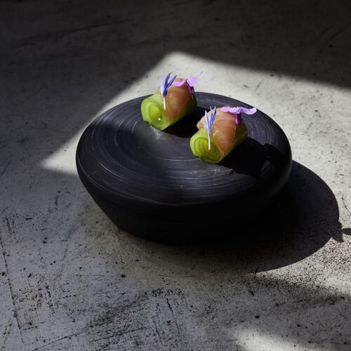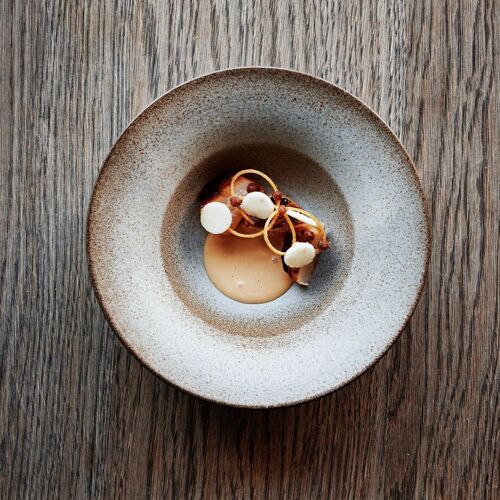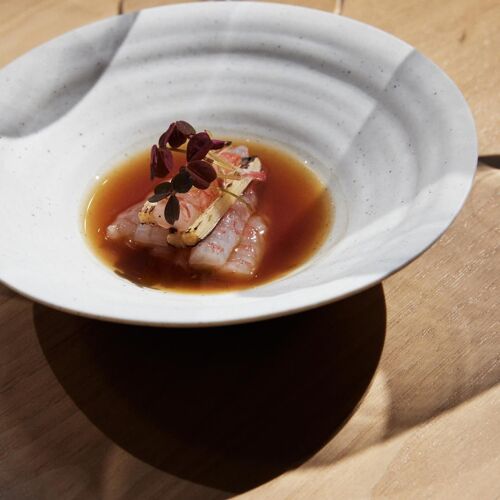 "Our fish is wild, line caught, not red listed or by-catch. All meat is organic or wild, almost all other ingredients are organic and produced in Norway. We recycle our food waste into garum, vinegar powder, oil etc. or as compost. Our wines are sustainable too. Our roof garden is planted with bee-friendly flowers, our uniforms are made from organic cotton."