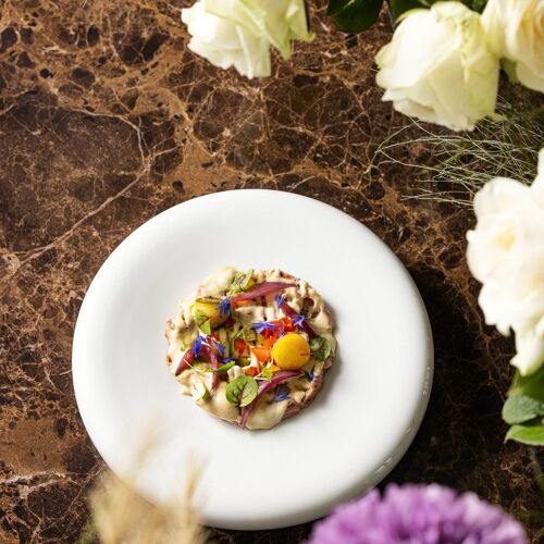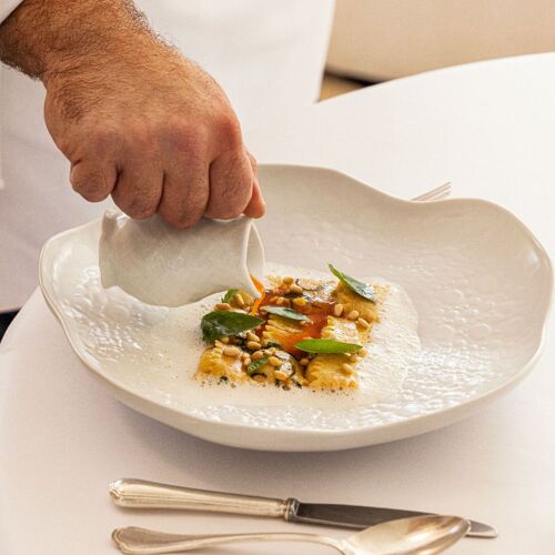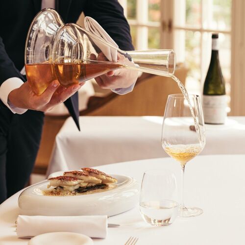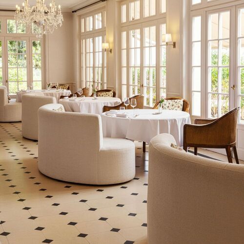 This handsome little 17C château and charming 15C manor house are set in grounds on the banks of the River Loir. The restaurant has an elegant interior refurbished in a contemporary style, in a palette of light tones, and a pleasant terrace overlooking the valley. Italian chef Attilio Marrazzo chooses quality ingredients – including produce grown in his own vegetable garden – for his modern cuisine. His dishes (free-range poultry, fricassee of chanterelles with parsley, Caesar-style salad) show a good command of culinary techniques, and can be washed down with a wine from a list that focuses on regional tipples.