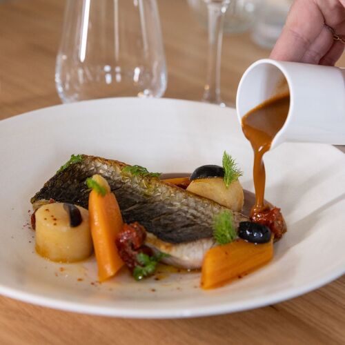 Jérémy Scalia, a thirtysomething chef from the Mazargues neighbourhood in Marseille and former head chef at the MICHELIN-starred La Table de Tourrel, has set up shop on Place Frédéric-Mistral, right next to the church. In this charming bistro with an elegant decor, he serves up relaxed bistronomy cuisine, rooted in uncompromising sourcing of quality produce, including sustainably caught fish from Mathieu Chapel in Le Grau-du-Roi, organic fruit and vegetables from small-scale local producers. The concise, indulgent menu presents a modern, largely seafood-driven taste of Provence: mullet ceviche with turmeric, sea bream with basil sauce vierge and confit fennel, squid in red wine with Camargue rice. Don't miss out on the panisses, served here as an amuse-bouche. There are three guestrooms on the floor above.