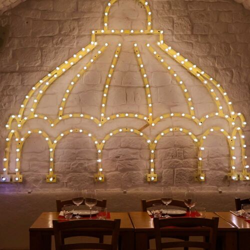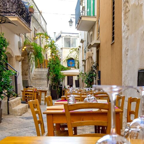 Situated a stone’s throw from the castle and the cathedral in the historic centre, this restaurant boasts an attractive outdoor space in an alleyway and traditional dining rooms with barrel-vaulted ceilings. Here, enjoy authentic dishes from Puglia with the occasional creative twist and careful attention to presentation.