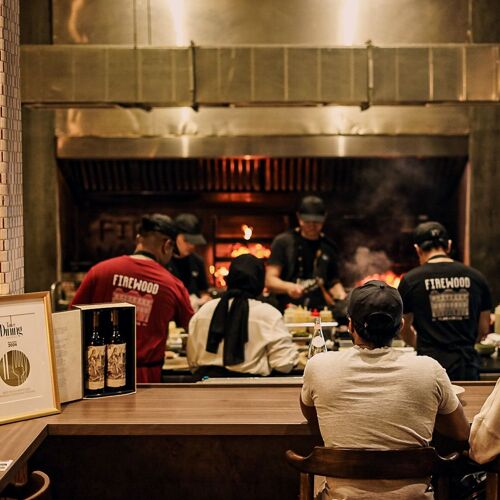 The historic building with a lofty ceiling is furnished in faux industrial style, providing the perfect foil for the central open fire grill. Ask for counter seats to make the most of the smoky vibe and high flames. Both set and á la carte menus are available. Start with hay smoked seasonal mushrooms, followed by tiger prawn in sweet, tangy Nyonya sauce. Beef lovers cannot fail but find their favourite cuts here – consider pre-ordering the dry-aged steaks in advance.