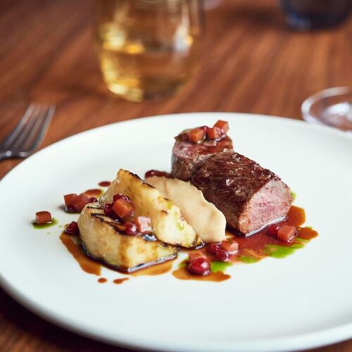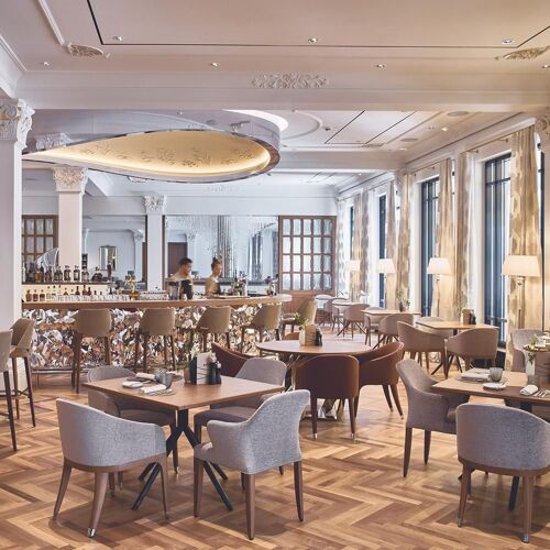 This restaurant subscribes to the interesting concept of "health-and-lifestyle cuisine", which places the emphasis on sustainability and fair trade. Here, they make a point of using seasonal produce sourced from the local region and are keen to exchange ideas with local growers and producers. Their international produce is also sustainably farmed. The dishes, which are inspired by nature, can be ordered à la carte or as a set menu – for example, "sautéed pike-perch, sauerkraut, bacon, beurre blanc, mountain potatoes" or the equally flavoursome "cheesecake mousse, cinnamon blossom foam, pear". Then there is the friendly, attentive and professional service as well as the upscale, chic interior design featuring colours and materials that echo the natural world. The glass-walled wine cellar is particularly elegant. In summer, the terrace is a real highlight.