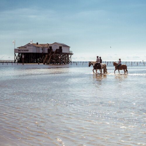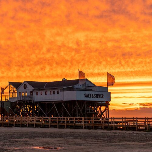 This restaurant is housed in an 8m-high building on stilts right by the beach, within spitting distance of the sea – an impressive location in which to enjoy fresh cuisine featuring produce from the region. At this "Fish Grill & Beach Bar", the tempting menu includes dishes such as grilled turbot and "fish fingers royal". Good to know: The chicken nuggets on the children's menu are made from regional organic poultry. Wine connoisseurs are bound to find something to their liking on the well-selected wine list. The atmosphere is nice and lively both inside and out on the fabulous terrace. Another Salt & Silver in addition to the two Hamburg restaurants. During the high season and on weekends, be sure to make a reservation. Tip: Park behind the dunes and enjoy the lovely 15min walk to the restaurant.
