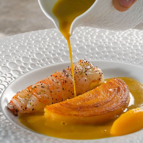 Perfect for a date, this restaurant has gold chain curtains hanging mid-air, theatrically lit against a dark ceiling. The young Japanese chef has worked and travelled extensively in Japan, Australia, Singapore and Taiwan, gaining culinary insights along the way. His season-driven menu sees eclectic influences through a global lens, providing diners with a choice of three mains. The meticulously plated food has a distinctly modern look.