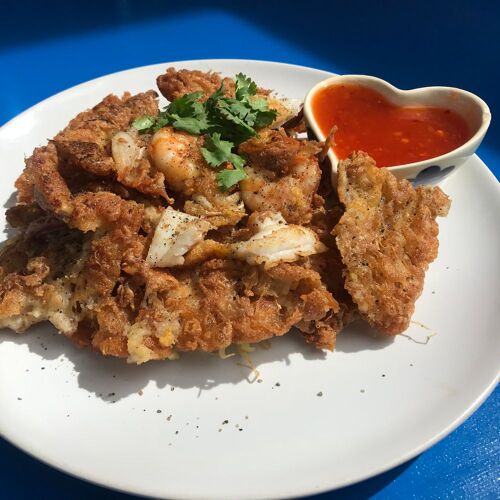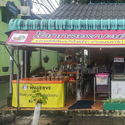 A humble street stall in Khok Kloi known for its tasty tom yam noodles with soft-boiled egg and a gentle kick. The pad thai wrapped in omelette has a nice balance of sweet and savoury. The vegetarian option comes with tofu from Songkhla. Seating is limited and lunchtimes are busy.