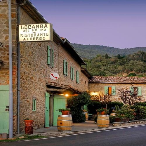 This rustic yet charming restaurant occupies an old family mill. It has attractive guestrooms that reflect the elegant simplicity of the Tuscan countryside. In the kitchen, the female chef creates traditional specialities such as fried rabbit and nettle with ricotta cheese gnudi (ravioli filling without the pasta) in a fresh tomato sauce.