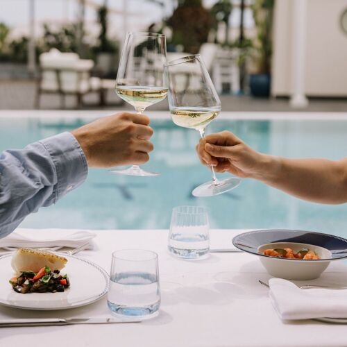Within Twiga beach establishment, in a setting where glamour reigns supreme, multifunctional and equipped with a fully-fledged cocktail bar, the cuisine favours classic recipes and cooking methods, but equally dedicates substantial attention to raw seafood and pizza. From our last visit, the seafood salad—boasting excellent varied citronette-dressed products—and the roast turbot with lemon potato cream and asparagus stand particularly memorable.