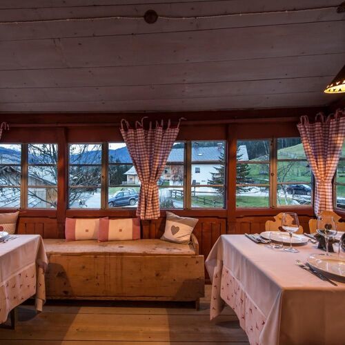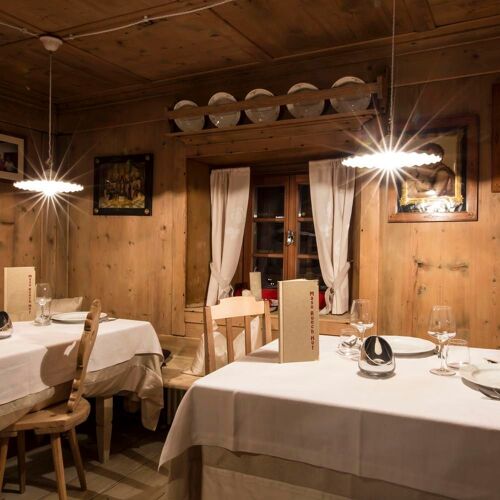 Surrounded by woods, a trip to this restaurant housed in an 18C farmhouse is like taking a journey back in time. Take a seat in one of the wood-adorned Stube-style rooms and enjoy generous portions of delicious home-cooked Ladin specialities featured on a single tasting menu, including cajinci t’ega (spinach-filled ravioli), excellent pork ribs with polenta, and apple strudel. The small wine list has the same local focus, featuring labels from the Alto Adige region. A recent addition, the restaurant also now has a few spacious, welcoming chalets available for guests.