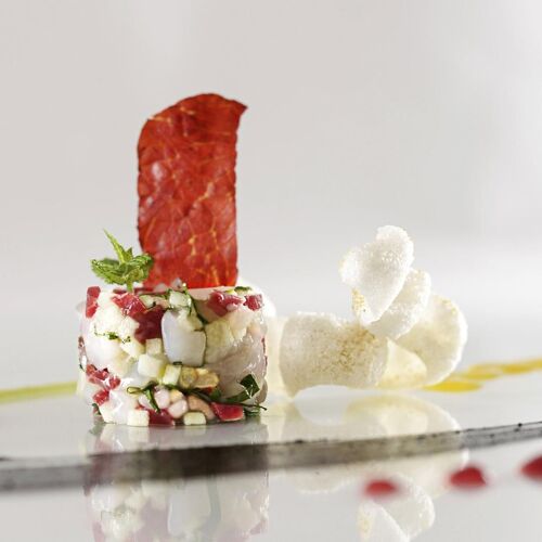 A charming pink house in the heart of this wine-producing village overlooking Lake Geneva. In this traditional setting, chef Denis Velen conjures up creative gastronomic cuisine that combines originality with delicious flavours as witnessed in dishes such as crispy spiced sea bass with choucroute.