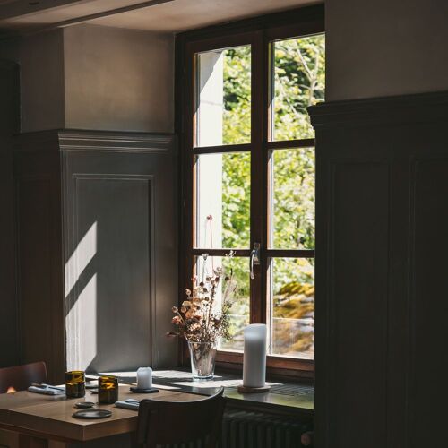 Located in a former Cistercian monastery that dates back to 1442, this restaurant proposes food that is very much of the moment. The original and exciting dishes draw heavily on local organic produce and heritage vegetables. Diners are won over by thoroughly modern fare that has been devised with a genuine concern for sustainability, such as suckling lamb served with pak choi and rhubarb. Appealing terrace on the edge of the forest, and a young and trendy atmosphere. A winning formula.