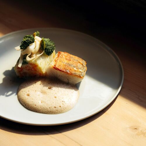 Tanja and Tobias Schöpf's establishment is pleasingly informal. She provides cordial and proficient service in the inviting wood-panelled dining space, occasionally taking a seat alongside diners at their table. Her husband, meanwhile, prepares five flavoursome dishes using regional ingredients, for you to select à la carte or as a set menu. Tantalising examples include Riebelmais (dry-milled corn), onion, Vorarlberg mountain cheese, or chicken leg, Savoy cabbage, leek, parsley root. He likes to keep things natural and seasonal – he goes hunting and forages for mushrooms, buds and herbs. The wine pairings, too, are carefully selected – an alcohol-free alternative is also available.