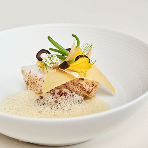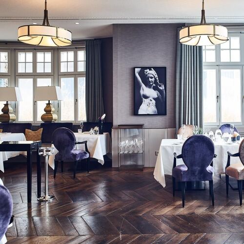 Elegance and sophistication permeate every inch of this establishment, from the inviting lounge – perfect for an aperitif, digestif or coffee – to the stylish, contemporary restaurant and the fabulous terrace overlooking Lake Constance. The Riva hotel's fine dining restaurant boasts a prime waterfront location, but it captures hearts first and foremost with its classic-inspired cuisine under the culinary direction of Dirk Hoberg. This spruce Jugendstil villa dating from 1909 provides the setting in which to sample a tasting menu composed of refined and meticulously crafted dishes, complete with sauces inspired by the classics of French cuisine – the Château Chalon sauce, for example, is exquisite! The chefs serve one or two courses themselves. The extensive wine list features a particularly good selection of regional labels and sparkling wines, and the sommelier's recommendations are spot on. Tip: Book the "Kitchen Table" right by the pass to the open kitchen. Up to four diners can sit here with a clear view of the chefs at work.