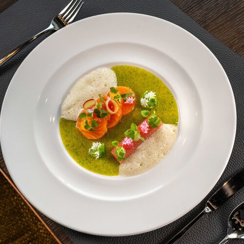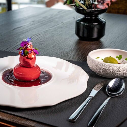 The location is a draw in itself! Named after its address in Edlmairstraße 1, the restaurant is housed on the ninth floor of the Karl Turm high-rise office building. The interior is modern and elegant, with decorative touches such as striking lampshades suspended from an industrial-style ceiling and floor-to-ceiling windows that afford a sensational view of the historical old town and the Danube – the sunsets are wonderful. The integrated bar in the entrance area is the ideal place for an aperitif. The French-influenced modern cooking style is exemplified in dishes such as carabinero with carrot, curry and kaffir lime. You can opt for a set menu comprising five or six courses (with wine pairings on request) or order à la carte.