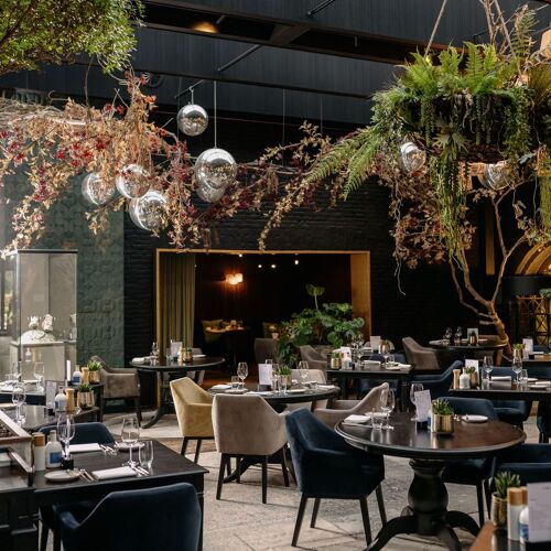 The sky is visible through the glazed roof and tropical plants and contemporary artwork set the singular scene indoors, while the terrace is taken by storm in fine weather. The food features a pageant of polished French fare with the occasional Italian twist, illustrated by terrine of foie gras or venison in a Grand Veneur sauce. Consummate craftsmanship and a reverent respect for culinary tradition.