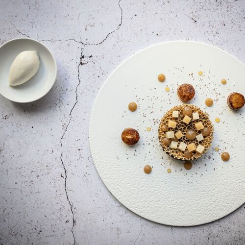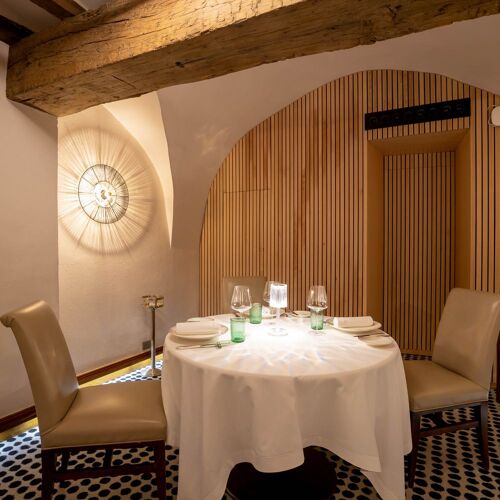 It's impossible to sum up in just a few lines the story of this institution, whose star-studded career begun back in… 1926! Yet, Lameloise, whose interior features a string of warm, cosy dining rooms, each of which is appointed individually, is far from nostalgic. Éric Pras, former sous-chef to Jacques Lameloise, became head chef in 2009 when his mentor retired; as Éric puts it: "Tradition is the future." Faithful to the venue’s founding spirit, as inspired as he is meticulous, Pras pays homage to Burgundy's terroir (snails, Bresse poultry, Charolais beef, Morvan hazelnut cazette) whilst keeping pace with his era and today’s tastes. They serve a fine selection of wines, especially by the glass.