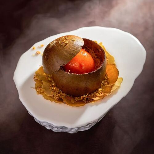 The culinary score offers novel twists on Sichuanese cooking. The dishes taste authentic, but also explore dimensions that differ from typical Sichuanese fare. The plating is minimalistic and contemporary. Try kung pao bird’s nest inspired by the 24 taste profiles of Sichuanese cuisine – velvety bird’s nest enrobed in a crunchy shell of kung pao sauce. White ferula mushroom and abalone are laced in Sichuan pepper oil loaded in numbing goodness.