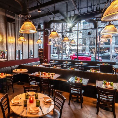 This boisterous spot, and little sister to Osteria Morini is a definite crowd-pleaser. The bar is always packed but guests are here for more than just cocktails, as Chef Matt Adler presides over a Sicilian-leaning menu that teems with choices. There are crudos and small plates aplenty, but the sfincione, especially when dressed up with stracciatella, is an absolute must. This is straight-up comfort food but done with care and skill. Pastas are made in house, and available as half portions if you want to sample more of the menu. One to consider? The thick gramigna noodles tossed with pork sausage, green onion, black pepper, and egg yolk for an almost creamy sauce with a hint of bite. Round out your meal with dessert like bombolini or an affogato sundae.