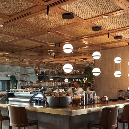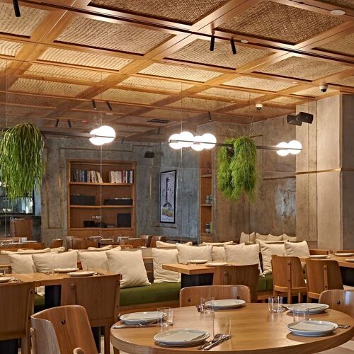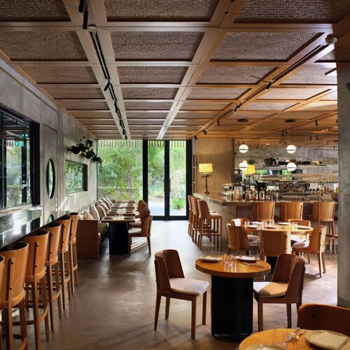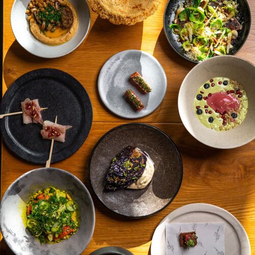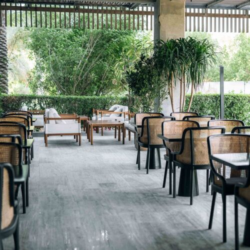 An appealing, original restaurant located near Dubai, green oasis, Al Barari. It’s a trendy spot with pared-back style, a relaxed vibe and a sustainable ethos. The impressive open kitchen features a wood oven, a grill and a rotisserie, which play a key role in many of the global dishes. Some plates are perfect for sharing; the whole roasted local sole, curry leaf and caper butter vinaigrette is a must.