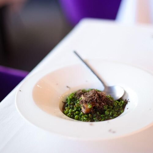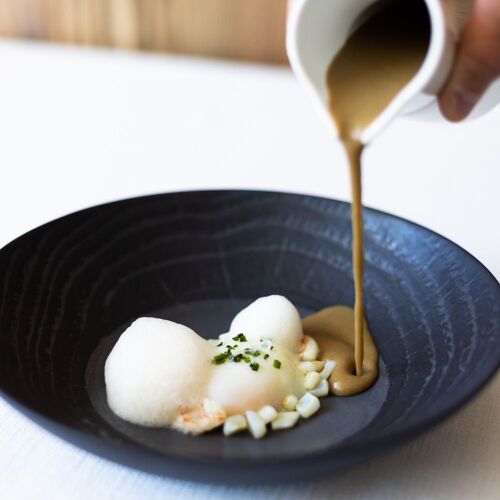 If you’re looking for a spectacular setting in which to eat near the Caldea spa, this restaurant in a shopping district just two minutes’ walk away could be the place. To a welcoming contemporary backdrop featuring a profusion of wood and an open-view kitchen, enjoy an updated take on traditional cuisine. Standout dishes include aged beef loin tartare, pigs’ trotters stuffed with prawns from Sant Carles and several seasonal specialities such as Maresme peas with wild mushrooms and white prawns.