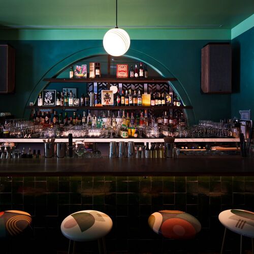 Outside it may be sunny and bright, but step inside ViceVersa, just off the lobby in the Elser Hotel, and it's a different mood entirely. Dark wood and rich green walls enhanced with pops of color from framed art lend a sultry moodiness to a room that's buzzing with activity.
