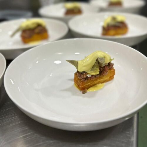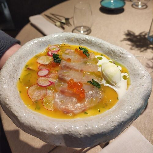 Located in the centre of Carballo, this friendly, family-run restaurant continues to attract new customers daily! Chef Rocío Martínez was keen to spice up the dining options in the local Bergantiños region (“pementa” is the Galician word for “pepper”) with her updated take on traditional and regional cuisine with a touch of fusion, but always focusing on Galicia’s superb seasonal ingredients and paying homage to the gastronomic heritage of the Costa da Morte along with a strong emphasis on detail. A private dining room is also available for those requiring more privacy. Dishes that appear on the menu include albacore tuna with pepper, lime and coriander foam, and “kikos”; rice with monkfish and cockles; and “filloa”-filled pastry with rice pudding and rum and raisin ice-cream.