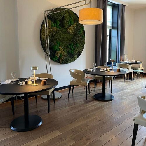 Striking contemporary art adorns the walls inside this historical property dating back to 1863 – at 't Raedthuys, art and dining go hand in hand. The modern decor beautifully preserves the building's authentic character. A window to the kitchen allows you to see the chefs and their team at work. On sunny days, the terrace at the front is the perfect spot for a romantic dinner for two. Prepare to be delighted as hostess Anouska Lamers and sommelier Karina van der Kolk introduce you to their unique collection of imported wines, which pair beautifully with the culinary creations of Tom Lamers and Hans den Engelsen. These chefs are traditionalists, who excel at classic dishes such as tournedos Rossini. They have a masterful ability to cook a leg of Dutch lamb to perfection, ensuring it is juicy and seasoned just right. However, they also have a modern edge, delighting diners with artistic plating and surprising textures. Think savoury crème brûlée or Jerusalem artichoke – as chips, as a cream, raw and pickled – with smoked eel. You should definitely sample something from the cheese trolley, which boasts around 30 cheeses. No doubt about it: the real artists are in the kitchen!